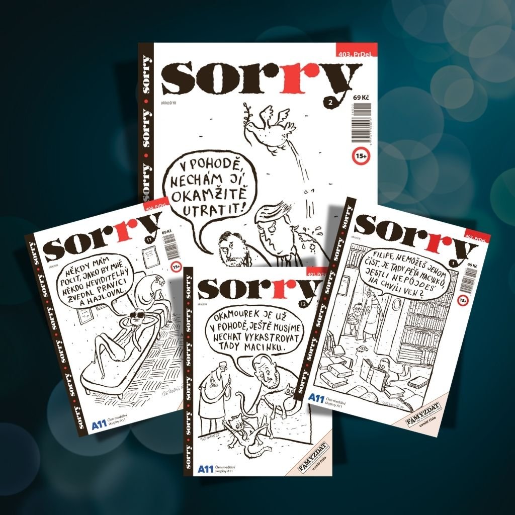 Časopis sorry je humoristický měsíčník, který poprvé vyšel v březnu 1992 pod vydavatelskou hlavičkou JUDr. Fidelise Schlée. Za téměř šestadvacetiletou kariérou tohoto unikátního projektu v rámci českého mediálního trhu stojí především publicista Milan Podobský (Fefík) a novináři Vilém Svoboda (Vilas) a Petr Kovář (Vářka). Nedílnou, a ve své podstatě stěžejní, součástí magazínu Sorry jsou však kreslené vtipy, na jejichž tvorbě, se za celou dobu existence magazínu, podílely mimo jiné takové osobnosti české karikatury, jakými byli a jsou například Michal Hrdý, Petr Urban, Marek Douša, Radovan Rakus, Marek Setíkovský, Jiří Koštýř, Eja Kulovaný, Karel Klos a další.